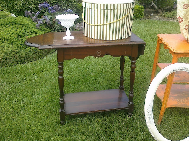 here's a cute little drop leaf side table, it was solid mahogany...